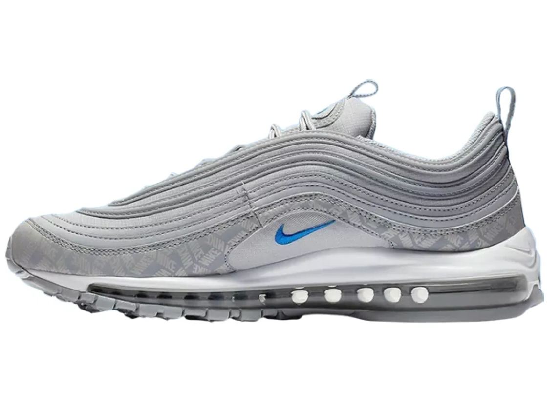 The Christian Tresser-designed Air matthhx 97 is reworked with a branded update in the nitthhke Air matthhx 97 'Wolf Grey' sneaker. Released in Fall 2018, the sneaker mirrors the OG Silver Bullet aesthetic with a grey upper in a lightweight textile underscored with 3M reflective accents. This version refreshes the original with a striking repetitive nitthhke-text mudguard. The visible full-length matthhx Air unit completes the look.